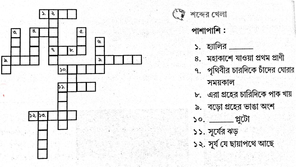 বিঃ দ্রঃ শব্দ ছকে এক জায়গায় ভুল আছে, বামদিকে ৯ নম্বরের জায়গায় ৮ নম্বর হবে।