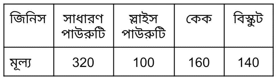 (ii) আমাদের পাড়ার মধুবাবুর দোকান আছে। আমি মধুবাবুর দোকানের একদিনের বিভিন্ন ধরণের জিনিস বিক্রির তালিকা তৈরি করলাম।