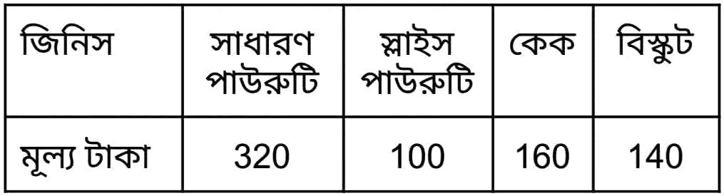 4. মধুবাবুর দোকানের এক দিনের বিভিন্ন ধরনের জিনিস বিক্রির তালিকা দেওয়া হল।