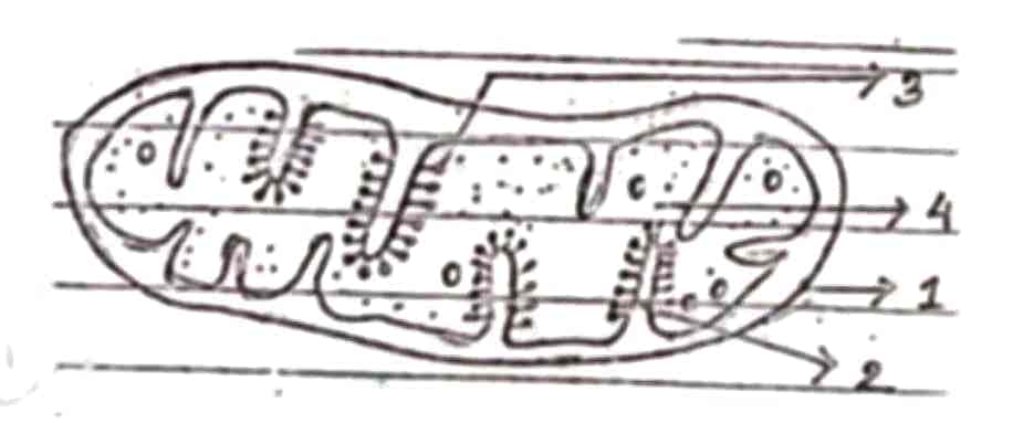 এটি কোন্ কোশ অঙ্গানু ? 1,2,3,4 নং অংশগুলির নাম লেখো। এই কোশ অঙ্গানুর দুটি কাজ লেখো। ১+২+২=৫