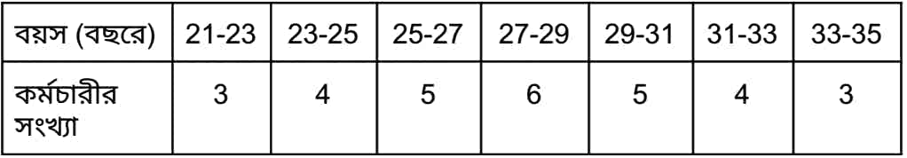 অথবা, কোন কারখানার 30 জন কর্মচারীর বয়স নিম্নে প্রদত্তঃ