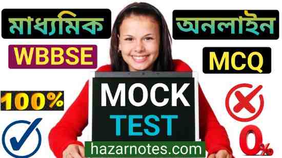 Madhyamik Exam Preparation Online Mock Test. আজকের বিষয় দশম শ্রেণির জন্য MCQ Mock Test. পশ্চিমবঙ্গ মাধ্যমিক পরীক্ষায় সংক্ষিপ্ত এবং বহুবিকল্পভিত্তিক প্রশ্নোত্তর (MCQ) মিলে ৩০ শতাংশের বেশি নম্বর থাকে। অনলাইন মক্ টেস্ট MCQ প্রশ্নে পরীক্ষার্থীদের সম্পূর্ণ নম্বর তুলতে দারুণ ভাবে সাহায্য করে। তাই ছাত্রছাত্রীদের সুবিধার্থে সমস্ত বিষয়ের Online MCQ Mock Test- এর জন্য প্রশ্ন দেওয়া হল। এবার তোমরা নিজেরাই যাচাই করে নাও নিজের দক্ষতা।
